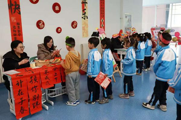 “鎏光璀璨焕新颜”中,学生为本学期认识的生字朋友“换新衣”,也通过系鞋带、挂衣服将自己的鞋柜、书架进行整理。“创意饺子话团圆”,孩子们利用喜欢的粘土制作新颖独特的创意饺子,起个有“年味儿”的名字,并作为推介官向大家介绍自己的饺子特点,在感受传统美食的同时锻炼动手和表达能力。最后,“生声不息送祝福”,孩子们精心制作贺卡书写祝福,将它送给亲人朋友,并用一首欢快的《咙咚呛》迎接新年的到来。
